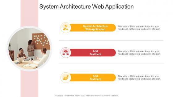 Introducing our well designed System Architecture Web Application In Powerpoint And Google Slides Cpb. This PowerPoint design presents information on topics like System Architecture Web Application. As it is predesigned it helps boost your confidence level. It also makes you a better presenter because of its high quality content and graphics. This PPT layout can be downloaded and used in different formats like PDF, PNG, and JPG. Not only this, it is available in both Standard Screen and Widescreen aspect ratios for your convenience. Therefore, click on the download button now to persuade and impress your audience. Our System Architecture Web Application In Powerpoint And Google Slides Cpb are topically designed to provide an attractive backdrop to any subject. Use them to look like a presentation pro.