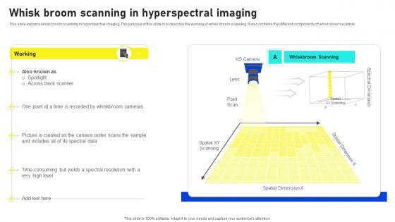 This slide explains whisk broom scanning in hyperspectral imaging. The purpose of this slide is to describe the working of whisk broom scanning. It also contains the different components of whisk broom scanner. Take your projects to the next level with our ultimate collection of Whisk Broom Scanning In Hyperspectral Imaging Sensors And Systems Icons Pdf. Slidegeeks has designed a range of layouts that are perfect for representing task or activity duration, keeping track of all your deadlines at a glance. Tailor these designs to your exact needs and give them a truly corporate look with your own brand colors they will make your projects stand out from the rest This slide explains whisk broom scanning in hyperspectral imaging. The purpose of this slide is to describe the working of whisk broom scanning. It also contains the different components of whisk broom scanner.