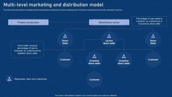 This slide represents network marketing model showcasing flow of distributors and direct selling process. It includes manufacturing, direct seller, distribution center etc. Find highly impressive Multi Level Marketing Distribution Effective Network Marketing Promotion Tactics Introduction Pdf on Slidegeeks to deliver a meaningful presentation. You can save an ample amount of time using these presentation templates. No need to worry to prepare everything from scratch because Slidegeeks experts have already done a huge research and work for you. You need to download Multi Level Marketing Distribution Effective Network Marketing Promotion Tactics Introduction Pdf for your upcoming presentation. All the presentation templates are 100 percent editable and you can change the color and personalize the content accordingly. Download now This slide represents network marketing model showcasing flow of distributors and direct selling process. It includes manufacturing, direct seller, distribution center etc.