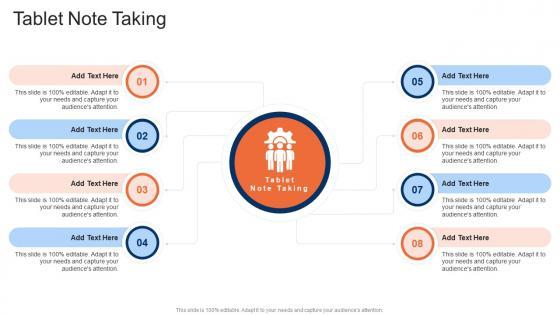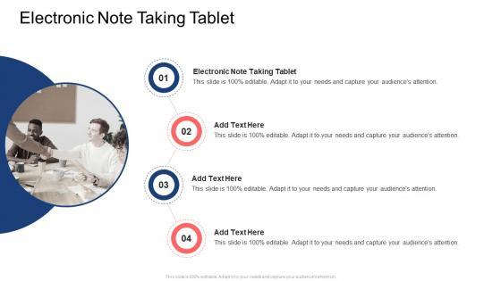 Presenting our innovatively designed set of slides titled Electronic Note Taking Tablet In Powerpoint And Google Slides Cpb This completely editable PowerPoint graphic exhibits Electronic Note Taking Tablet that will help you convey the message impactfully. It can be accessed with Google Slides and is available in both standard screen and widescreen aspect ratios. Apart from this, you can download this well structured PowerPoint template design in different formats like PDF, JPG, and PNG. So, click the download button now to gain full access to this PPT design. Our Electronic Note Taking Tablet In Powerpoint And Google Slides Cpb are topically designed to provide an attractive backdrop to any subject. Use them to look like a presentation pro.