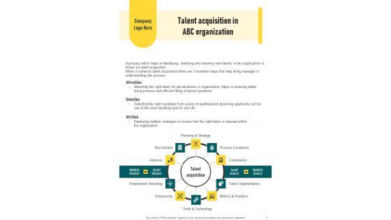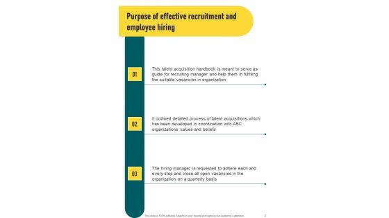 A process which helps in Identifying, selecting and retaining new talents in the organization is known as talent acquisition When it comes to talent acquisition there are 3 essential steps that help hiring manager in understanding the process. Welcome to our selection of the SHRM Talent Management Guide Handbook For Enterprise Talent Acquisition In ABC Organization Graphics PDF. These are designed to help you showcase your creativity and bring your sphere to life. Planning and Innovation are essential for any business that is just starting out. This collection contains the designs that you need for your everyday presentations. All of our PowerPoints are 100 percent editable, so you can customize them to suit your needs. This multi-purpose template can be used in various situations. Grab these presentation templates today.