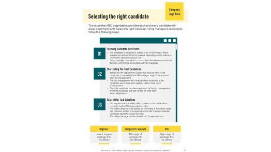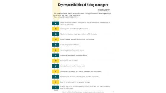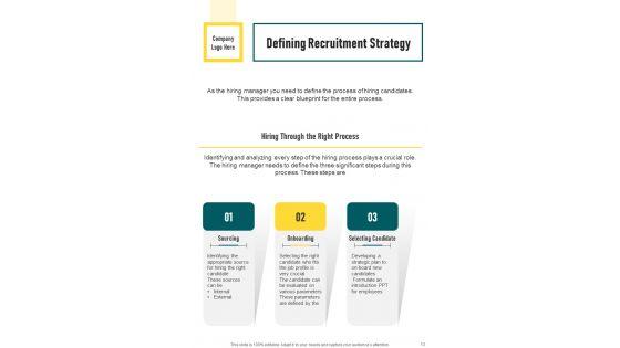 Empower your presentations with the Talent Acquisition And Hiring Handbook PPT Template. Craft engaging handbooks that captivate your audience. Our 100 percent editable template provides flexibility, while our expertly crafted content saves you time and effort. There is no need for extensive research simply personalize the template and create compelling handbooks effortlessly. Our Talent Acquisition And Hiring Handbook are topically designed to provide an attractive backdrop to any subject. Use them to look like a presentation pro.