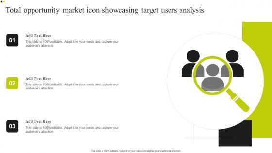Showcasing this set of slides titled Total Opportunity Market Icon Showcasing Target Users Analysis Rules Pdf. The topics addressed in these templates are Total Opportunity, Market Icon Showcasing, Target Users Analysis. All the content presented in this PPT design is completely editable. Download it and make adjustments in color, background, font etc. as per your unique business setting. Our Total Opportunity Market Icon Showcasing Target Users Analysis Rules Pdf are topically designed to provide an attractive backdrop to any subject. Use them to look like a presentation pro.