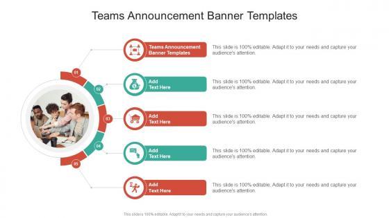 Presenting our innovatively-designed set of slides titled Teams Announcement Banner Templates In Powerpoint And Google Slides Cpb This completely editable PowerPoint graphic exhibits Teams Announcement Banner Templates that will help you convey the message impactfully. It can be accessed with Google Slides and is available in both standard screen and widescreen aspect ratios. Apart from this, you can download this well-structured PowerPoint template design in different formats like PDF, JPG, and PNG. So, click the download button now to gain full access to this PPT design. Our Teams Announcement Banner Templates In Powerpoint And Google Slides Cpb are topically designed to provide an attractive backdrop to any subject. Use them to look like a presentation pro.
