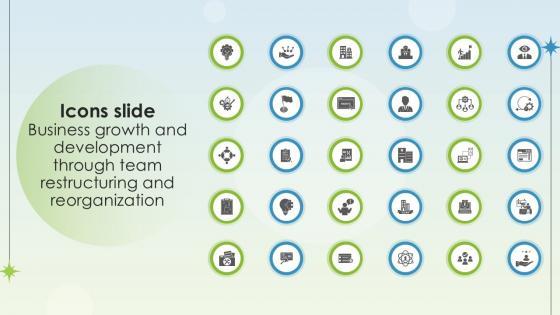Introducing our well designed Icons Slide Business Growth And Development Through Team Restructuring Ppt Example set of slides. The slide displays editable icons to enhance your visual presentation. The icons can be edited easily. So customize according to your business to achieve a creative edge. Download and share it with your audience. Our Icons Slide Business Growth And Development Through Team Restructuring Ppt Example are topically designed to provide an attractive backdrop to any subject. Use them to look like a presentation pro.