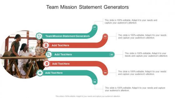 Introducing our well designed Team Mission Statement Generator In Powerpoint And Google Slides Cpb. This PowerPoint design presents information on topics like Team Mission Statement Generator. As it is predesigned it helps boost your confidence level. It also makes you a better presenter because of its high quality content and graphics. This PPT layout can be downloaded and used in different formats like PDF, PNG, and JPG. Not only this, it is available in both Standard Screen and Widescreen aspect ratios for your convenience. Therefore, click on the download button now to persuade and impress your audience. Our Team Mission Statement Generator In Powerpoint And Google Slides Cpb are topically designed to provide an attractive backdrop to any subject. Use them to look like a presentation pro.