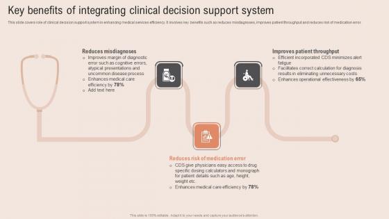 This slide covers role of clinical decision support system in enhancing medical services efficiency. It involves key benefits such as reduces misdiagnoses, improves patient throughput and reduces risk of medication error. This Key Benefits Integrating Healthcare Information Tech To Enhance Medical Facilities Portrait Pdf is perfect for any presentation, be it in front of clients or colleagues. It is a versatile and stylish solution for organizing your meetings. The Key Benefits Integrating Healthcare Information Tech To Enhance Medical Facilities Portrait Pdf features a modern design for your presentation meetings. The adjustable and customizable slides provide unlimited possibilities for acing up your presentation. Slidegeeks has done all the homework before launching the product for you. So, do not wait, grab the presentation templates today This slide covers role of clinical decision support system in enhancing medical services efficiency. It involves key benefits such as reduces misdiagnoses, improves patient throughput and reduces risk of medication error.