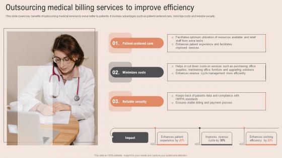 This slide covers key benefits of outsourcing medical services to serve better to patients. It involves advantages such as patient centered care, minimize costs and reliable security. Slidegeeks is one of the best resources for PowerPoint templates. You can download easily and regulate Outsourcing Medical Billing Healthcare Information Tech To Enhance Medical Facilities Sample Pdf for your personal presentations from our wonderful collection. A few clicks is all it takes to discover and get the most relevant and appropriate templates. Use our Templates to add a unique zing and appeal to your presentation and meetings. All the slides are easy to edit and you can use them even for advertisement purposes. This slide covers key benefits of outsourcing medical services to serve better to patients. It involves advantages such as patient centered care, minimize costs and reliable security.