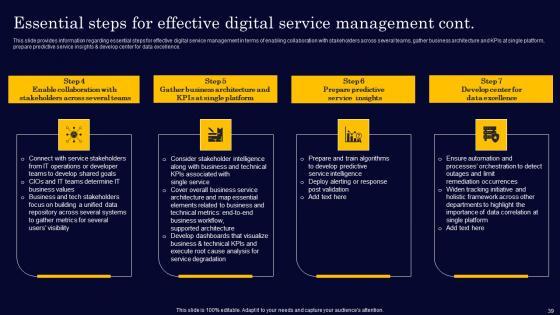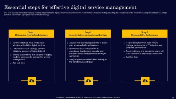 This slide provides information regarding essential steps for effective digital service management in terms of determining firms cloud strategy, detecting vital services relevant for firm and managing KPIs for business. It helps executive stakeholders to progress in transformation strategy. Do you have to make sure that everyone on your team knows about any specific topic I yes, then you should give Essential Steps For Effective Digital Service Gen Tech Stack Playbook Microsoft Pdf a try. Our experts have put a lot of knowledge and effort into creating this impeccable Essential Steps For Effective Digital Service Gen Tech Stack Playbook Microsoft Pdf. You can use this template for your upcoming presentations, as the slides are perfect to represent even the tiniest detail. You can download these templates from the Slidegeeks website and these are easy to edit. So grab these today This slide provides information regarding essential steps for effective digital service management in terms of determining firms cloud strategy, detecting vital services relevant for firm and managing KPIs for business. It helps executive stakeholders to progress in transformation strategy.