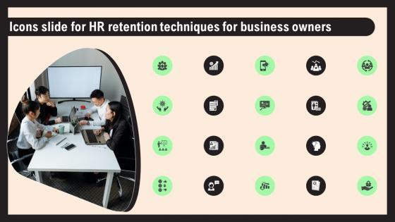 Introducing our well designed Icons Slide For HR Retention Techniques For Business Owners Introduction Pdf set of slides. The slide displays editable icons to enhance your visual presentation. The icons can be edited easily. So customize according to your business to achieve a creative edge. Download and share it with your audience. Our Icons Slide For HR Retention Techniques For Business Owners Introduction Pdf are topically designed to provide an attractive backdrop to any subject. Use them to look like a presentation pro.