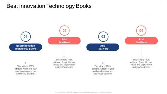 Introducing our well designed Best Innovation Technology Books In Powerpoint And Google Slides Cpb This PowerPoint design presents information on topics like Best Innovation Technology Books As it is predesigned it helps boost your confidence level. It also makes you a better presenter because of its high quality content and graphics. This PPT layout can be downloaded and used in different formats like PDF, PNG, and JPG. Not only this, it is available in both Standard Screen and Widescreen aspect ratios for your convenience. Therefore, click on the download button now to persuade and impress your audience. Our Best Innovation Technology Books In Powerpoint And Google Slides Cpb are topically designed to provide an attractive backdrop to any subject. Use them to look like a presentation pro.