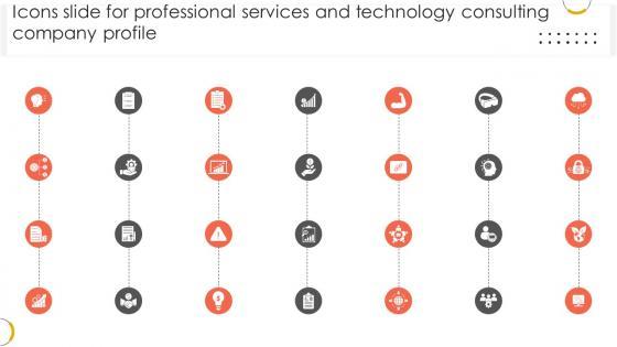 Presenting our innovatively structured Icons Slide For Professional Services And Technology Consulting Company Profile Ppt Example CP SS V set of slides. The slides contain a hundred100 percent editable icons. You can replace these icons without any inconvenience. Therefore, pick this set of slides and create a striking presentation. Our Icons Slide For Professional Services And Technology Consulting Company Profile Ppt Example CP SS V are topically designed to provide an attractive backdrop to any subject. Use them to look like a presentation pro.