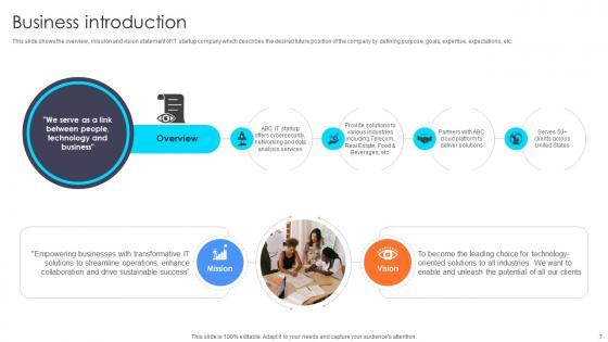 This slide shows the overview, mission and vision statement of IT startup company which describes the desired future position of the company by defining purpose, goals, expertise, expectations, etc. Create an editable Business Introduction Information Technology Startup Go To Market Strategy GTM SS V that communicates your idea and engages your audience. Whether you are presenting a business or an educational presentation, pre-designed presentation templates help save time. Business Introduction Information Technology Startup Go To Market Strategy GTM SS V is highly customizable and very easy to edit, covering many different styles from creative to business presentations. Slidegeeks has creative team members who have crafted amazing templates. So, go and get them without any delay. This slide shows the overview, mission and vision statement of IT startup company which describes the desired future position of the company by defining purpose, goals, expertise, expectations, etc.