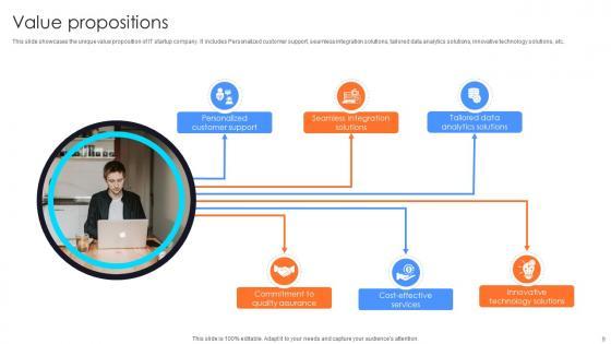 This slide showcases the unique value proposition of IT startup company. It includes Personalized customer support, seamless integration solutions, tailored data analytics solutions, innovative technology solutions, etc. The Value Propositions Information Technology Startup Go To Market Strategy GTM SS V is a compilation of the most recent design trends as a series of slides. It is suitable for any subject or industry presentation, containing attractive visuals and photo spots for businesses to clearly express their messages. This template contains a variety of slides for the user to input data, such as structures to contrast two elements, bullet points, and slides for written information. Slidegeeks is prepared to create an impression. This slide showcases the unique value proposition of IT startup company. It includes Personalized customer support, seamless integration solutions, tailored data analytics solutions, innovative technology solutions, etc.