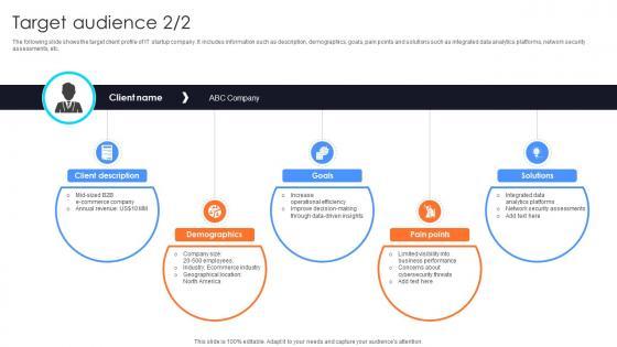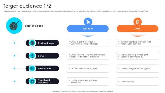 The following slide shows target audience such as small businesses, startups, medium-sized and educational institutions. It also includes their goals which includes streamline operations, optimize IT spending, etc.Explore a selection of the finest Target Audience Information Technology Startup Go To Market Strategy GTM SS V here. With a plethora of professionally designed and pre-made slide templates, you can quickly and easily find the right one for your upcoming presentation. You can use our Target Audience Information Technology Startup Go To Market Strategy GTM SS V to effectively convey your message to a wider audience. Slidegeeks has done a lot of research before preparing these presentation templates. The content can be personalized and the slides are highly editable. Grab templates today from Slidegeeks. The following slide shows target audience such as small businesses, startups, medium-sized and educational institutions. It also includes their goals which includes streamline operations, optimize IT spending, etc.