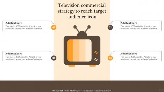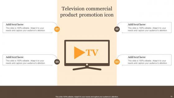Share a great deal of information on the topic by deploying this Television Commercial Ppt PowerPoint Presentation Complete Deck With Slides. Support your ideas and thought process with this prefabricated set. It includes a set of ninteen slides, all fully modifiable and editable. Each slide can be restructured and induced with the information and content of your choice. You can add or remove large content boxes as well, to make this PPT slideshow more personalized. Its high quality graphics and visuals help in presenting a well coordinated pitch. This PPT template is also a resourceful tool to take visual cues from and implement the best ideas to help your business grow and expand. The main attraction of this well formulated deck is that everything is editable, giving you the freedom to adjust it to your liking and choice. Changes can be made in the background and theme as well to deliver an outstanding pitch. Therefore, click on the download button now to gain full access to this multifunctional set. Our Television Commercial Ppt PowerPoint Presentation Complete Deck With Slides are topically designed to provide an attractive backdrop to any subject. Use them to look like a presentation pro.