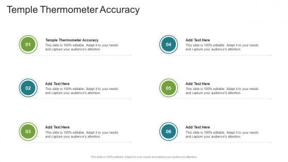 Presenting our innovatively designed set of slides titled Temple Thermometer Accuracy In Powerpoint And Google Slides Cpb This completely editable PowerPoint graphic exhibits Temple Thermometer Accuracy that will help you convey the message impactfully. It can be accessed with Google Slides and is available in both standard screen and widescreen aspect ratios. Apart from this, you can download this well structured PowerPoint template design in different formats like PDF, JPG, and PNG. So, click the download button now to gain full access to this PPT design. Our Temple Thermometer Accuracy In Powerpoint And Google Slides Cpb are topically designed to provide an attractive backdrop to any subject. Use them to look like a presentation pro.