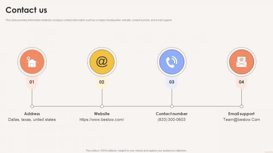 This slide provides information related to company contact information such as company headquarter, website, contact number, and email support. There are so many reasons you need a Contact Us Term Life Insurance Platform Investor Funding Elevator Pitch Deck. The first reason is you can not spend time making everything from scratch, Thus, Slidegeeks has made presentation templates for you too. You can easily download these templates from our website easily. This slide provides information related to company contact information such as company headquarter, website, contact number, and email support.