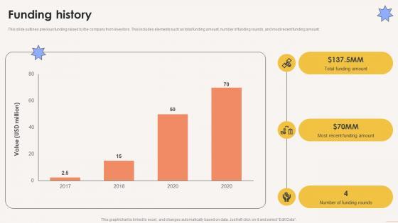 This slide outlines previous funding raised by the company from investors. This includes elements such as total funding amount, number of funding rounds, and most recent funding amount. Do you have an important presentation coming up Are you looking for something that will make your presentation stand out from the rest Look no further than Funding History Term Life Insurance Platform Investor Funding Elevator Pitch Deck. With our professional designs, you can trust that your presentation will pop and make delivering it a smooth process. And with Slidegeeks, you can trust that your presentation will be unique and memorable. So why wait Grab Funding History Term Life Insurance Platform Investor Funding Elevator Pitch Deck today and make your presentation stand out from the rest This slide outlines previous funding raised by the company from investors. This includes elements such as total funding amount, number of funding rounds, and most recent funding amount.