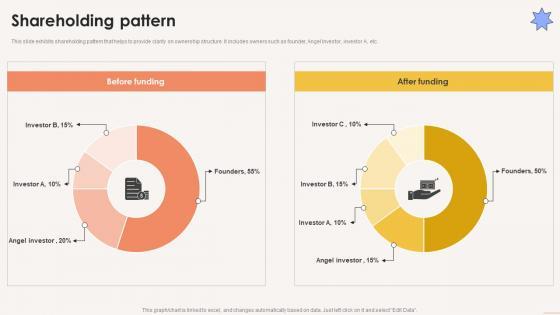This slide exhibits shareholding pattern that helps to provide clarity on ownership structure. It includes owners such as founder, Angel Investor, investor A, etc. This Shareholding Pattern Term Life Insurance Platform Investor Funding Elevator Pitch Deck is perfect for any presentation, be it in front of clients or colleagues. It is a versatile and stylish solution for organizing your meetings. The Shareholding Pattern Term Life Insurance Platform Investor Funding Elevator Pitch Deck features a modern design for your presentation meetings. The adjustable and customizable slides provide unlimited possibilities for acing up your presentation. Slidegeeks has done all the homework before launching the product for you. So, do not wait, grab the presentation templates today This slide exhibits shareholding pattern that helps to provide clarity on ownership structure. It includes owners such as founder, Angel Investor, investor A, etc.