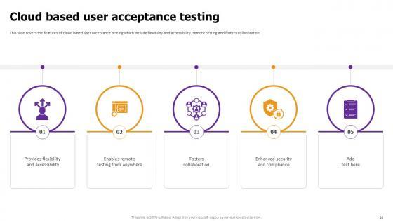 This slide covers the features of cloud based user acceptance testing which include flexibility and accessibility, remote testing and fosters collaboration. Do you have an important presentation coming up Are you looking for something that will make your presentation stand out from the rest Look no further than Cloud Based User Acceptance Effective Test Data Management Ppt Example With our professional designs, you can trust that your presentation will pop and make delivering it a smooth process. And with Slidegeeks, you can trust that your presentation will be unique and memorable. So why wait Grab Cloud Based User Acceptance Effective Test Data Management Ppt Example today and make your presentation stand out from the rest This slide covers the features of cloud based user acceptance testing which include flexibility and accessibility, remote testing and fosters collaboration.