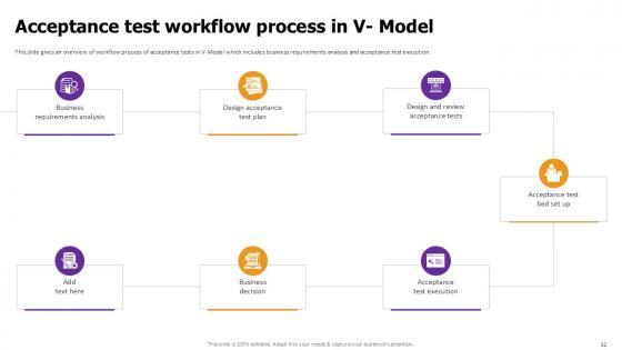 This slide gives an overview of workflow process of acceptance tests in V-Model which includes business requirements analysis and acceptance test execution. Boost your pitch with our creative Acceptance Test Workflow Effective Test Data Management Ppt Slide Deliver an awe-inspiring pitch that will mesmerize everyone. Using these presentation templates you will surely catch everyones attention. You can browse the ppts collection on our website. We have researchers who are experts at creating the right content for the templates. So you do not have to invest time in any additional work. Just grab the template now and use them. This slide gives an overview of workflow process of acceptance tests in V-Model which includes business requirements analysis and acceptance test execution.