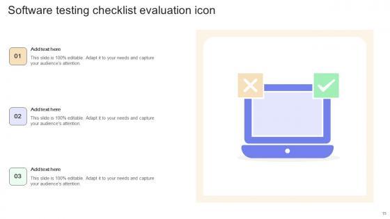 Showcasing this set of slides titled Software Testing Checklist Evaluation Icon Ppt Professional Shapes Pdf. The topics addressed in these templates are Software Testing, Checklist Evaluation, Icon. All the content presented in this PPT design is completely editable. Download it and make adjustments in color, background, font etc. as per your unique business setting. Our Software Testing Checklist Evaluation Icon Ppt Professional Shapes Pdf are topically designed to provide an attractive backdrop to any subject. Use them to look like a presentation pro.