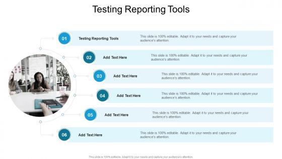 Introducing our well designed Testing Reporting Tools In Powerpoint And Google Slides Cpb. This PowerPoint design presents information on topics like Testing Reporting Tools. As it is predesigned it helps boost your confidence level. It also makes you a better presenter because of its high quality content and graphics. This PPT layout can be downloaded and used in different formats like PDF, PNG, and JPG. Not only this, it is available in both Standard Screen and Widescreen aspect ratios for your convenience. Therefore, click on the download button now to persuade and impress your audience. Our Testing Reporting Tools In Powerpoint And Google Slides Cpb are topically designed to provide an attractive backdrop to any subject. Use them to look like a presentation pro.