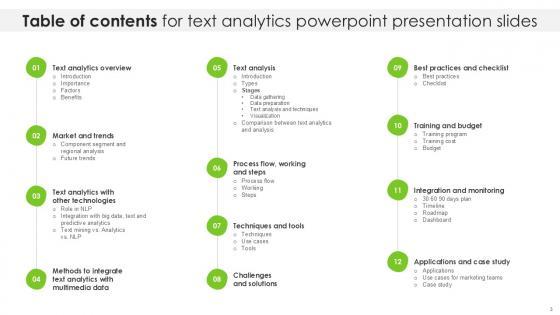 Do you know about Slidesgeeks Table Of Contents Text Analytics Powerpoint Presentation Slides PPT Presentation SS These are perfect for delivering any kind od presentation. Using it, create PowerPoint presentations that communicate your ideas and engage audiences. Save time and effort by using our pre-designed presentation templates that are perfect for a wide range of topic. Our vast selection of designs covers a range of styles, from creative to business, and are all highly customizable and easy to edit. Download as a PowerPoint template or use them as Google Slides themes. Our Table Of Contents Text Analytics Powerpoint Presentation Slides PPT Presentation SS are topically designed to provide an attractive backdrop to any subject. Use them to look like a presentation pro.