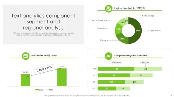 This slide gives an overview of the text analytics components segment and regional analysis for North America, Europe, Asia Pacific, Middle East and Africa, etc. Presenting this PowerPoint presentation, titled Text Analytics Component Segment And Regional Analysis PPT Template SS, with topics curated by our researchers after extensive research. This editable presentation is available for immediate download and provides attractive features when used. Download now and captivate your audience. Presenting this Text Analytics Component Segment And Regional Analysis PPT Template SS. Our researchers have carefully researched and created these slides with all aspects taken into consideration. This is a completely customizable Text Analytics Component Segment And Regional Analysis PPT Template SS that is available for immediate downloading. Download now and make an impact on your audience. Highlight the attractive features available with our PPTs. This slide gives an overview of the text analytics components segment and regional analysis for North America, Europe, Asia Pacific, Middle East and Africa, etc.
