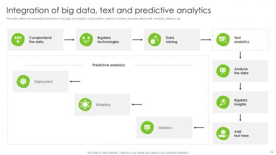 This slide outlines the integrated architecture of big data, text analytics, and predictive analytics, including elements deployment, modeling, statistics, etc. Welcome to our selection of the Integration Of Big Data Text And Predictive Analytics PPT Example SS. These are designed to help you showcase your creativity and bring your sphere to life. Planning and Innovation are essential for any business that is just starting out. This collection contains the designs that you need for your everyday presentations. All of our PowerPoints are 100Percent editable, so you can customize them to suit your needs. This multi-purpose template can be used in various situations. Grab these presentation templates today. This slide outlines the integrated architecture of big data, text analytics, and predictive analytics, including elements deployment, modeling, statistics, etc.