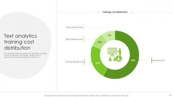 This slide showcases the training cost distribution, including various components of the training budget, such as instructors cost, training material cost, and so on. The Text Analytics Training Cost Distribution PPT Sample SS is a compilation of the most recent design trends as a series of slides. It is suitable for any subject or industry presentation, containing attractive visuals and photo spots for businesses to clearly express their messages. This template contains a variety of slides for the user to input data, such as structures to contrast two elements, bullet points, and slides for written information. Slidegeeks is prepared to create an impression. This slide showcases the training cost distribution, including various components of the training budget, such as instructors cost, training material cost, and so on.