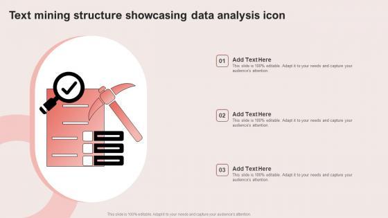 Showcasing this set of slides titled Text Mining Structure Showcasing Data Analysis Icon Microsoft Pdf. The topics addressed in these templates are Text Mining Structure, Showcasing Data Analysis Icon. All the content presented in this PPT design is completely editable. Download it and make adjustments in color, background, font etc. as per your unique business setting. Our Text Mining Structure Showcasing Data Analysis Icon Microsoft Pdf are topically designed to provide an attractive backdrop to any subject. Use them to look like a presentation pro.