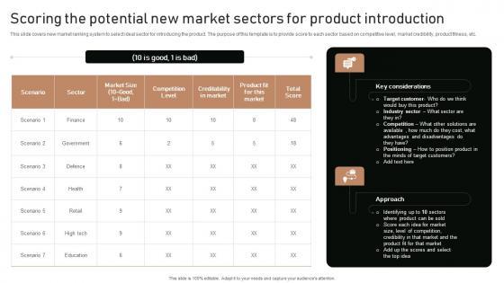 This slide covers new market ranking system to select ideal sector for introducing the product. The purpose of this template is to provide score to each sector based on competitive level, market credibility, product fitness, etc. Presenting this PowerPoint presentation, titled Execution Of Product Lifecycle Scoring The Potential New Market Sectors Infographics Pdf, with topics curated by our researchers after extensive research. This editable presentation is available for immediate download and provides attractive features when used. Download now and captivate your audience. Presenting this Execution Of Product Lifecycle Scoring The Potential New Market Sectors Infographics Pdf. Our researchers have carefully researched and created these slides with all aspects taken into consideration. This is a completely customizable Execution Of Product Lifecycle Scoring The Potential New Market Sectors Infographics Pdf that is available for immediate downloading. Download now and make an impact on your audience. Highlight the attractive features available with our PPTs. This slide covers new market ranking system to select ideal sector for introducing the product. The purpose of this template is to provide score to each sector based on competitive level, market credibility, product fitness, etc.