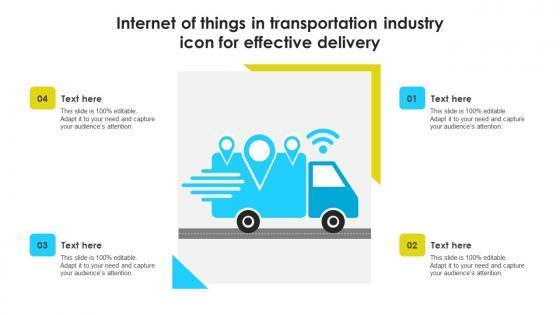 Pitch your topic with ease and precision using this Internet Of Things In Transportation Industry Icon For Effective Delivery Template Pdf This layout presents information on Internet Of Things, Transportation Industry, Icon For Effective Delivery It is also available for immediate download and adjustment. So, changes can be made in the color, design, graphics or any other component to create a unique layout. Our Internet Of Things In Transportation Industry Icon For Effective Delivery Template Pdf are topically designed to provide an attractive backdrop to any subject. Use them to look like a presentation pro.