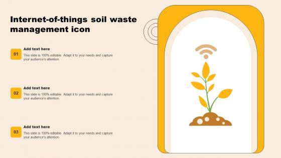 Showcasing this set of slides titled Internet Of Things Soil Waste Management Icon Diagrams Pdf. The topics addressed in these templates are Internet Of Things, Soil Waste Management, Icon. All the content presented in this PPT design is completely editable. Download it and make adjustments in color, background, font etc. as per your unique business setting. Our Internet Of Things Soil Waste Management Icon Diagrams Pdf are topically designed to provide an attractive backdrop to any subject. Use them to look like a presentation pro.