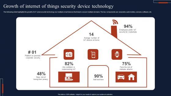 The following slide highlights the growth of IoT cybersecurity technology via multiple smart devices that help to secure multiple domains. The key components are wearable, automobiles, sensors, software, etc. Pitch your topic with ease and precision using this Growth Of Internet Of Things Security Device Technology Professional Pdf This layout presents information on Growth Of Internet, Things Security, Device Technology It is also available for immediate download and adjustment. So, changes can be made in the color, design, graphics or any other component to create a unique layout. The following slide highlights the growth of IoT cybersecurity technology via multiple smart devices that help to secure multiple domains. The key components are wearable, automobiles, sensors, software, etc.