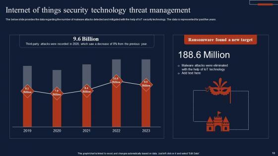 The below slide provides the data regarding the number of malware attacks detected and mitigated with the help of IoT security technology. The data is represented for past five years. Pitch your topic with ease and precision using this Internet Of Things Security Technology Threat Management Summary Pdf This layout presents information on Ransomware Found, New Target, Threat Management It is also available for immediate download and adjustment. So, changes can be made in the color, design, graphics or any other component to create a unique layout. The below slide provides the data regarding the number of malware attacks detected and mitigated with the help of IoT security technology. The data is represented for past five years.