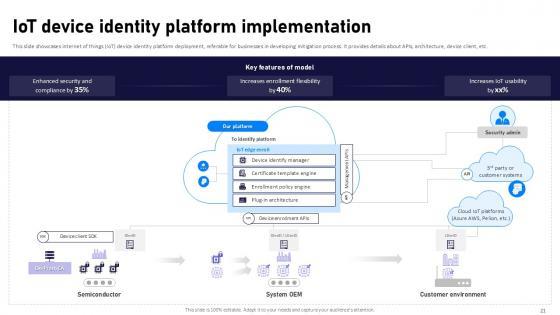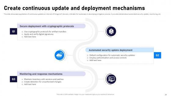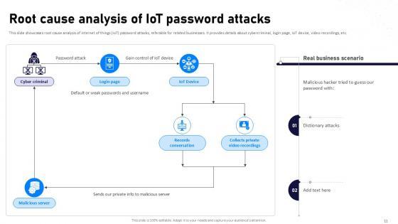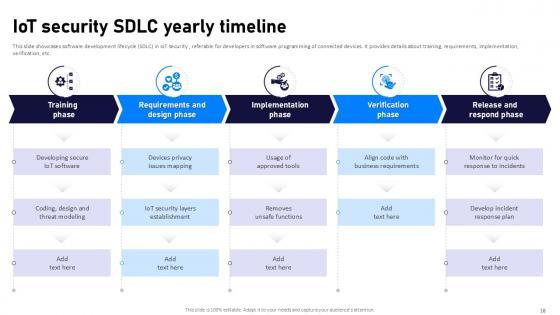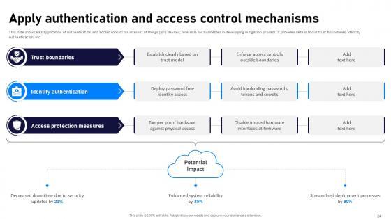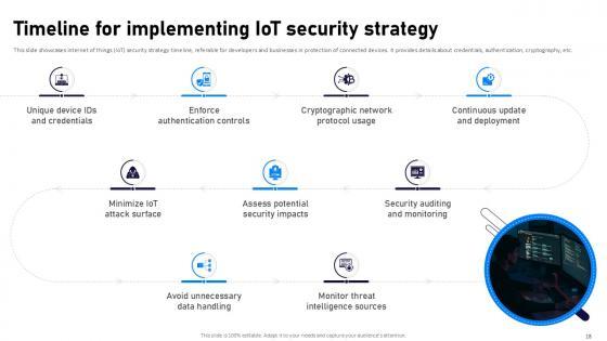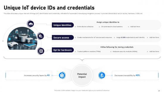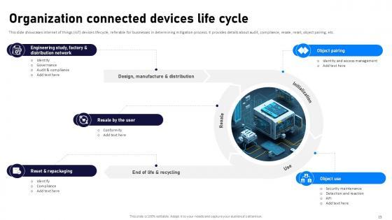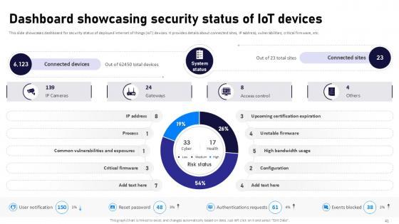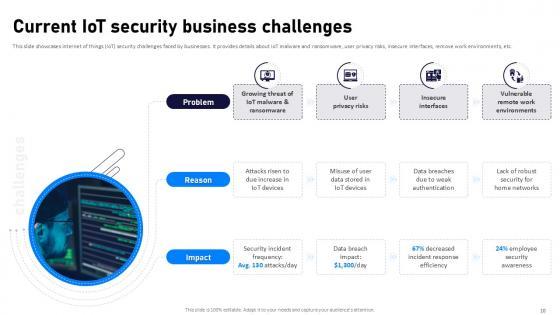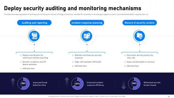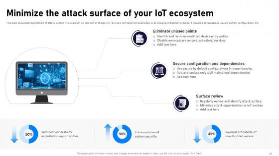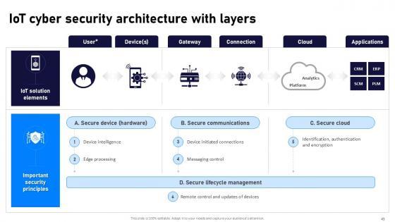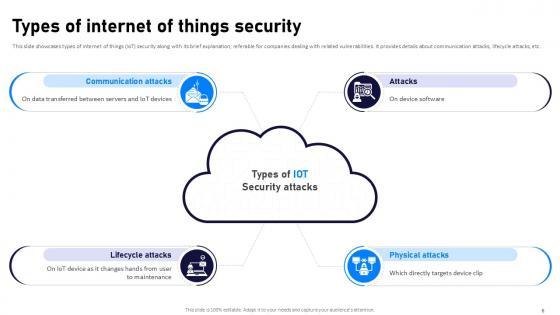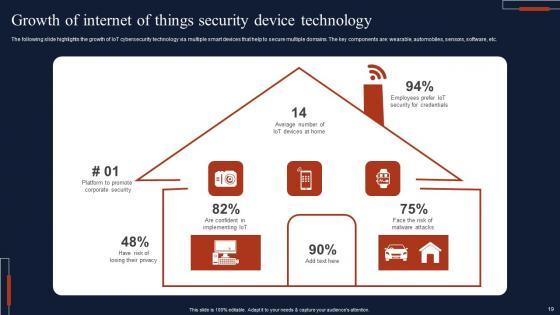 If designing a presentation takes a lot of your time and resources and you are looking for a better alternative, then this Internet Of Things Security Ppt Powerpoint Presentation Complete Deck With Slides is the right fit for you. This is a prefabricated set that can help you deliver a great presentation on the topic. All the twenty eight slides included in this sample template can be used to present a birds-eye view of the topic. These slides are also fully editable, giving you enough freedom to add specific details to make this layout more suited to your business setting. Apart from the content, all other elements like color, design, theme are also replaceable and editable. This helps in designing a variety of presentations with a single layout. Not only this, you can use this PPT design in formats like PDF, PNG, and JPG once downloaded. Therefore, without any further ado, download and utilize this sample presentation as per your liking. Our Internet Of Things Security Ppt Powerpoint Presentation Complete Deck With Slides are topically designed to provide an attractive backdrop to any subject. Use them to look like a presentation pro.