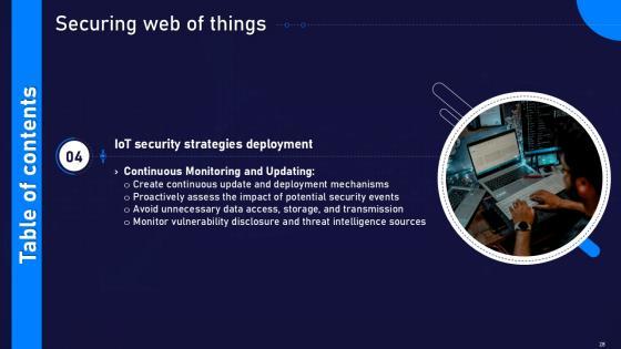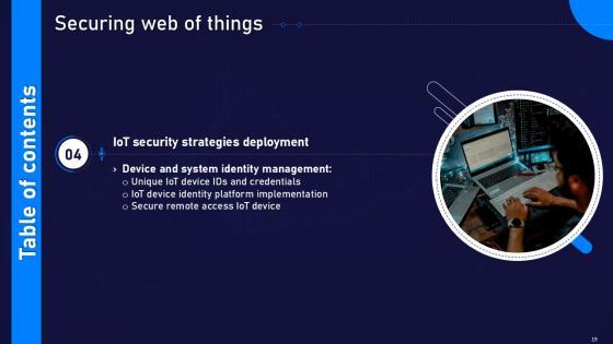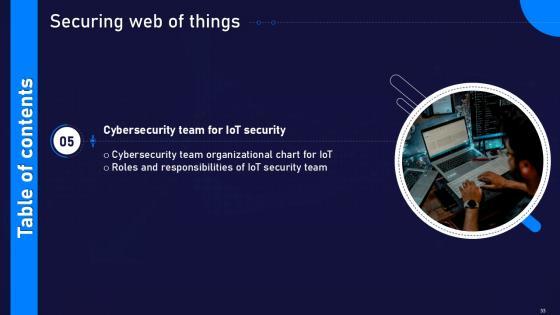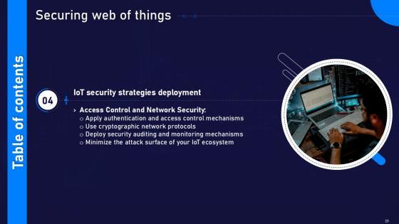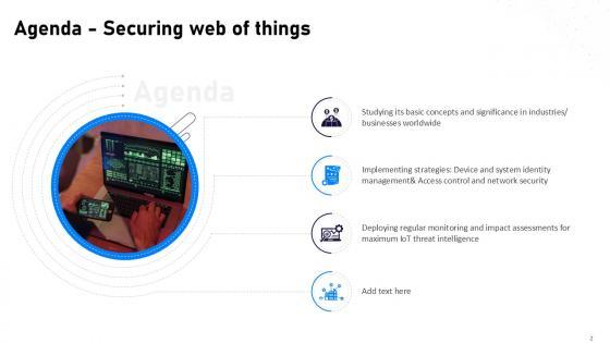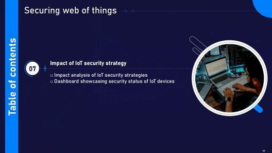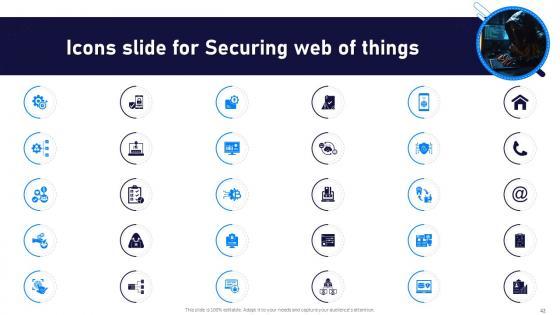 This Securing Web Of Things Powerpoint Presentation Slides Cybersecurity CD V Ppt Example is a primer on how to capitalize on business opportunities through planning, innovation, and market intelligence. The content-ready format of the complete deck will make your job as a decision-maker a lot easier. Use this ready-made PowerPoint Template to help you outline an extensive and legible plan to capture markets and grow your company on the right path, at an exponential pace. What is even more amazing is that this presentation is completely editable and 100 percent customizable. This fifty five slide complete deck helps you impress a roomful of people with your expertise in business and even presentation. Craft such a professional and appealing presentation for that amazing recall value. Download now. Our Securing Web Of Things Powerpoint Presentation Slides Cybersecurity CD V Ppt Example are topically designed to provide an attractive backdrop to any subject. Use them to look like a presentation pro.