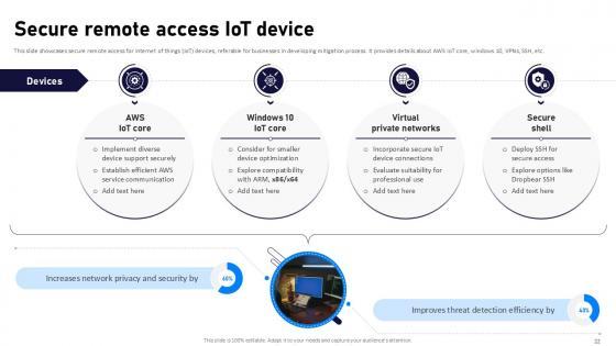 The below slide provides various IoT cloud security challenges and methods to overcome them that provide organizations with effective software and data management. Key challenges are lack of awareness, improper device updates, ineffective protocols, etc. Pitch your topic with ease and precision using this Internet Of Things Security Challenges And Mitigation Techniques Mockup Pdf This layout presents information on Lack Of Awareness, Ineffective Protocols, Lack Of Security Patch It is also available for immediate download and adjustment. So, changes can be made in the color, design, graphics or any other component to create a unique layout. The below slide provides various IoT cloud security challenges and methods to overcome them that provide organizations with effective software and data management. Key challenges are lack of awareness, improper device updates, ineffective protocols, etc.