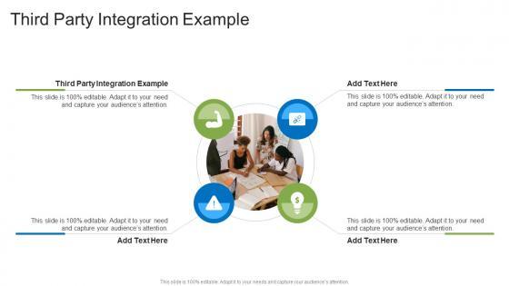 Presenting our innovatively designed set of slides titled Third Party Integration Example In Powerpoint And Google Slides Cpb. This completely editable PowerPoint graphic exhibits Third Party Integration Example that will help you convey the message impactfully. It can be accessed with Google Slides and is available in both standard screen and widescreen aspect ratios. Apart from this, you can download this well structured PowerPoint template design in different formats like PDF, JPG, and PNG. So, click the download button now to gain full access to this PPT design. Our Third Party Integration Example In Powerpoint And Google Slides Cpb are topically designed to provide an attractive backdrop to any subject. Use them to look like a presentation pro.