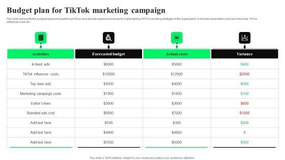 This slide shows the details related to identifying and finalizing brands niche to find popular influencers in the brands niche. It includes details related to narrowing down popular influencers with segmented audiences. Present like a pro with Budget Plan TikTok Marketing Campaign TikTok Advertising Strategies To Provide Effective Professional Pdf Create beautiful presentations together with your team, using our easy to use presentation slides. Share your ideas in real time and make changes on the fly by downloading our templates. So whether you are in the office, on the go, or in a remote location, you can stay in sync with your team and present your ideas with confidence. With Slidegeeks presentation got a whole lot easier. Grab these presentations today. This slide shows the details related to identifying and finalizing brands niche to find popular influencers in the brands niche. It includes details related to narrowing down popular influencers with segmented audiences.