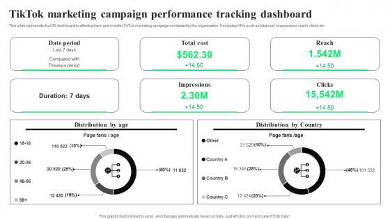This slide represents the KPI dashboard to effective track and monitor TikTok marketing campaign conducted by the organization. It includes KPIs such as total cost, impressions, reach, clicks etc. Whether you have daily or monthly meetings, a brilliant presentation is necessary. TikTok Marketing Campaign Performance TikTok Advertising Strategies To Provide Effective Demonstration Pdf can be your best option for delivering a presentation. Represent everything in detail using TikTok Marketing Campaign Performance TikTok Advertising Strategies To Provide Effective Demonstration Pdf and make yourself stand out in meetings. The template is versatile and follows a structure that will cater to your requirements. All the templates prepared by Slidegeeks are easy to download and edit. Our research experts have taken care of the corporate themes as well. So, give it a try and see the results. This slide represents the KPI dashboard to effective track and monitor TikTok marketing campaign conducted by the organization. It includes KPIs such as total cost, impressions, reach, clicks etc.
