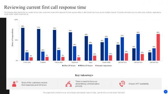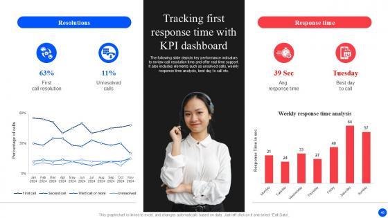 The following slide depicts key performance indicators to review call resolution time and offer real time support. It also includes elements such as unsolved calls, weekly response time analysis, best day to call etc. Presenting this PowerPoint presentation, titled Tracking First Response Time Improving Customer Retention PPT Presentation, with topics curated by our researchers after extensive research. This editable presentation is available for immediate download and provides attractive features when used. Download now and captivate your audience. Presenting this Tracking First Response Time Improving Customer Retention PPT Presentation. Our researchers have carefully researched and created these slides with all aspects taken into consideration. This is a completely customizable Tracking First Response Time Improving Customer Retention PPT Presentation that is available for immediate downloading. Download now and make an impact on your audience. Highlight the attractive features available with our PPTs. The following slide depicts key performance indicators to review call resolution time and offer real time support. It also includes elements such as unsolved calls, weekly response time analysis, best day to call etc.