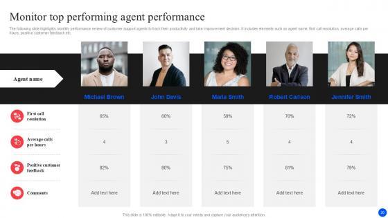 This slide provides an overview of major KPIs of customer service team. The metrics covered are average response time and first call resolution. From laying roadmaps to briefing everything in detail, our templates are perfect for you. You can set the stage with your presentation slides. All you have to do is download these easy to edit and customizable templates. Strategies To Improve Customer Support Services Issue 1 Increasing Average Response Time Elements PDF will help you deliver an outstanding performance that everyone would remember and praise you for. Do download this presentation today.