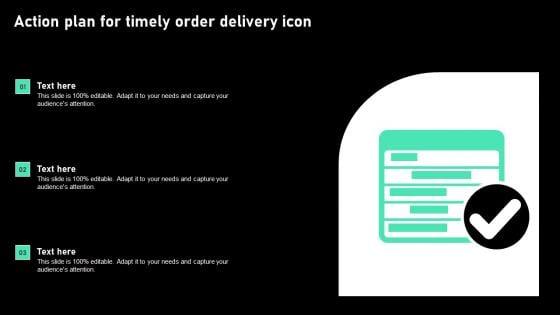 Pitch your topic with ease and precision using this Action Plan For Timely Order Delivery Icon Microsoft Pdf. This layout presents information on Action Plan,Timely Order,Delivery Icon. It is also available for immediate download and adjustment. So,changes can be made in the color,design,graphics or any other component to create a unique layout. Our Action Plan For Timely Order Delivery Icon Microsoft Pdf are topically designed to provide an attractive backdrop to any subject. Use them to look like a presentation pro.
