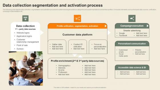 The following slide depicts data collection, segmentation and activation procedure to determine target audience categories and assist marketers to enrich their profiles. It includes elements such as first party data sources, unification, campaign implementation etc. Make sure to capture your audiences attention in your business displays with our gratis customizabl Data Collection Segmentation And Activation Usability Of CDP Software Tool Introduction Pdf. These are great for business strategies, office conferences, capital raising or task suggestions. If you desire to acquire more customers for your tech business and ensure they stay satisfied, create your own sales presentation with these plain slides. The following slide depicts data collection, segmentation and activation procedure to determine target audience categories and assist marketers to enrich their profiles. It includes elements such as first party data sources, unification, campaign implementation etc.