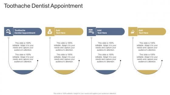Presenting our innovatively designed set of slides titled Toothache Dentist Appointment In Powerpoint And Google Slides Cpb This completely editable PowerPoint graphic exhibits Toothache Dentist Appointment that will help you convey the message impactfully. It can be accessed with Google Slides and is available in both standard screen and widescreen aspect ratios. Apart from this, you can download this well structured PowerPoint template design in different formats like PDF, JPG, and PNG. So, click the download button now to gain full access to this PPT design. Our Toothache Dentist Appointment In Powerpoint And Google Slides Cpb are topically designed to provide an attractive backdrop to any subject. Use them to look like a presentation pro.
