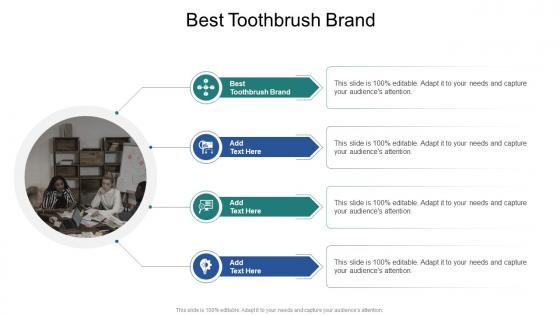 Introducing our well-designed Best Toothbrush Brand In Powerpoint And Google Slides Cpb. This PowerPoint design presents information on topics like Best Toothbrush Brand. As it is predesigned it helps boost your confidence level. It also makes you a better presenter because of its high-quality content and graphics. This PPT layout can be downloaded and used in different formats like PDF, PNG, and JPG. Not only this, it is available in both Standard Screen and Widescreen aspect ratios for your convenience. Therefore, click on the download button now to persuade and impress your audience. Our Best Toothbrush Brand In Powerpoint And Google Slides Cpb are topically designed to provide an attractive backdrop to any subject. Use them to look like a presentation pro.
